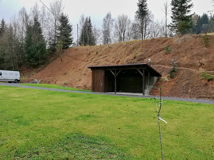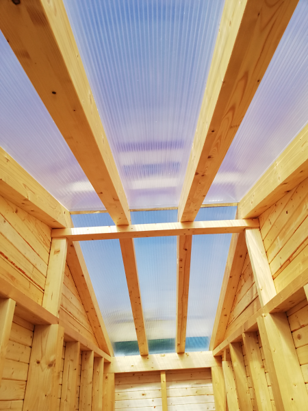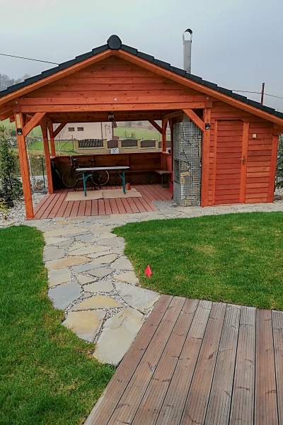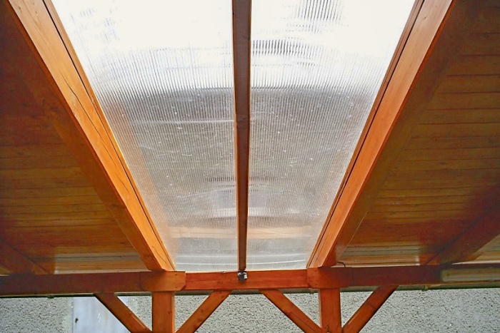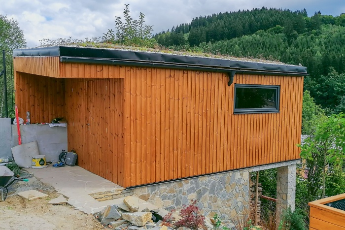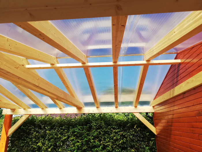 pergola na auto s úložným prostorem, střecha polykarbonát