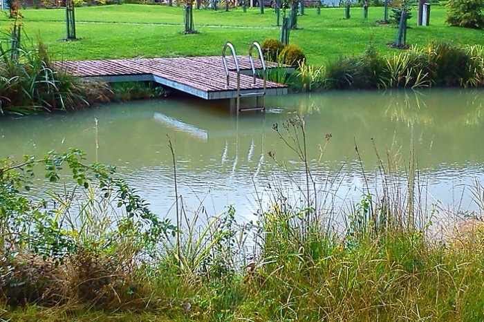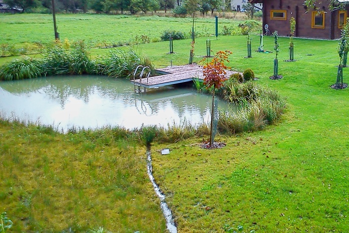 přírodní koupací jezírko s přepadem
