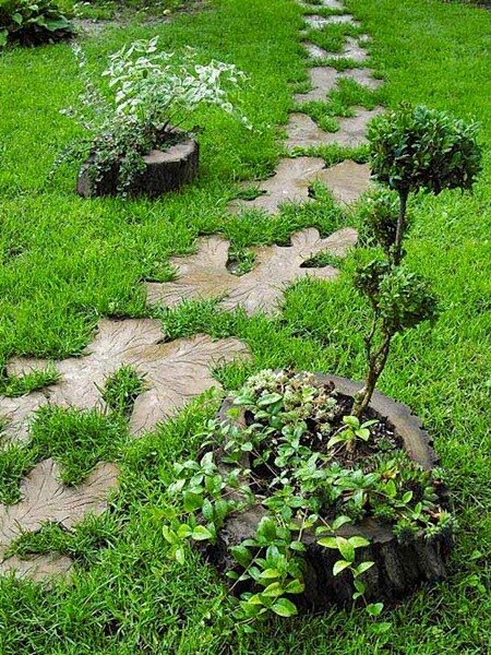 Nášlapy ve tvaru kořene. Umožňují rychle a jednoduše vytvořit cestičkyv zahradě. Vhodné umístit na místa, kde chceme zabránit sešlapání trávníku pro jeho časté zatěžování.