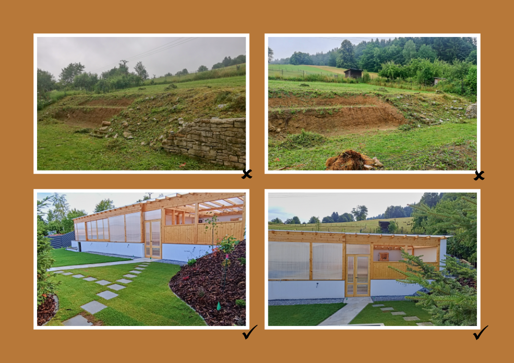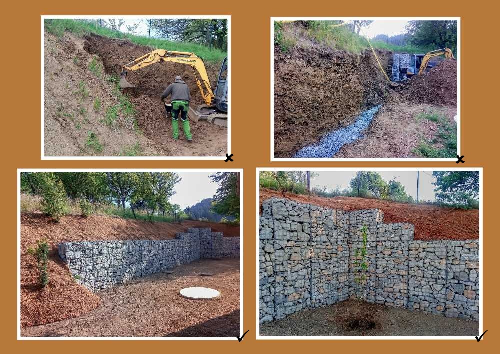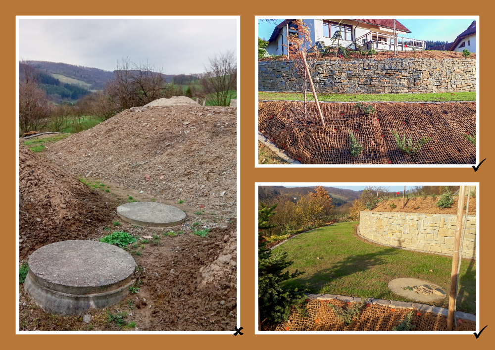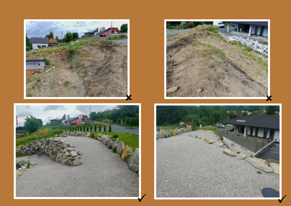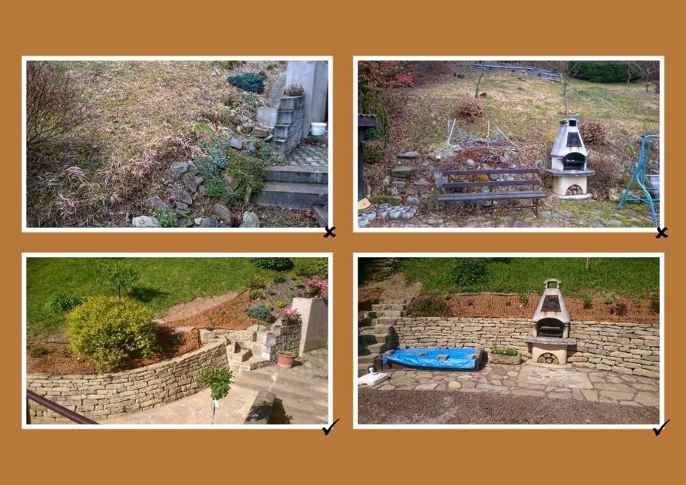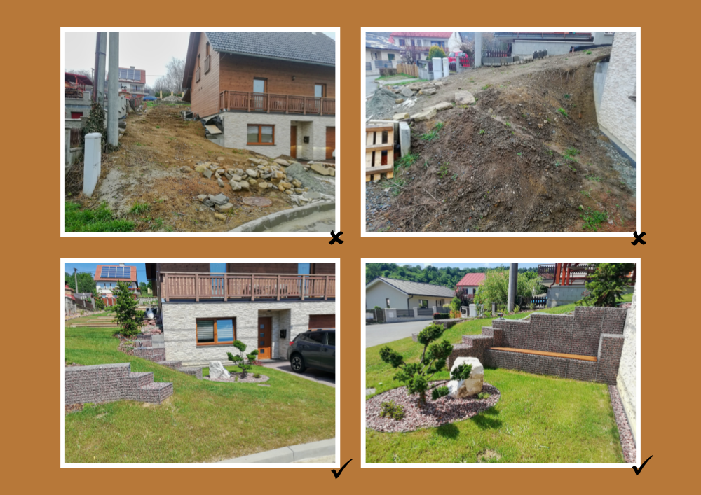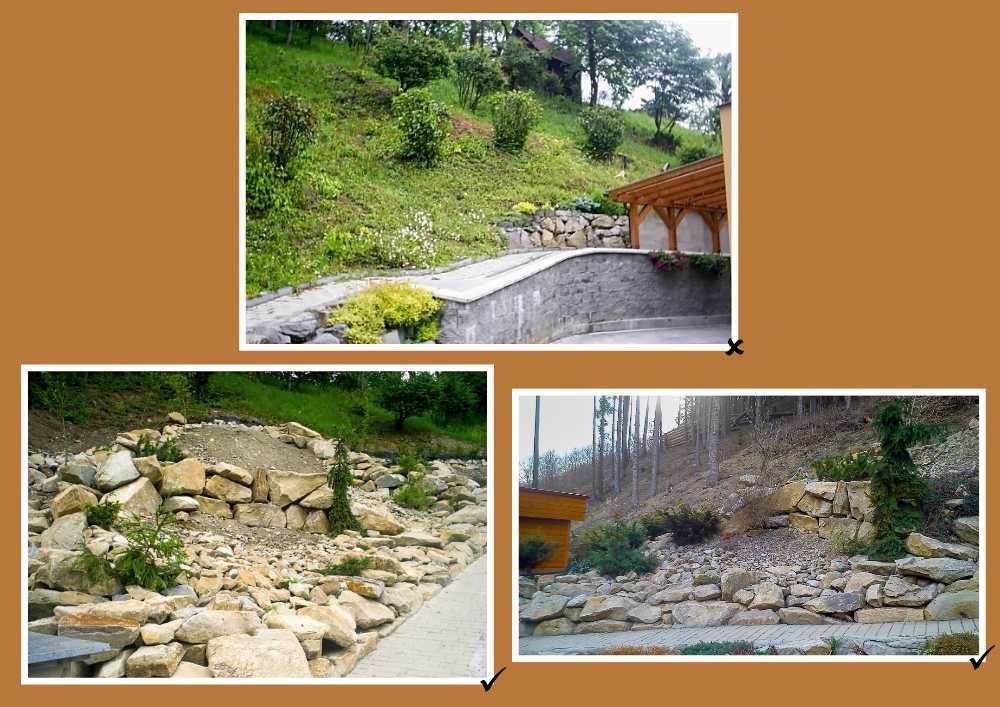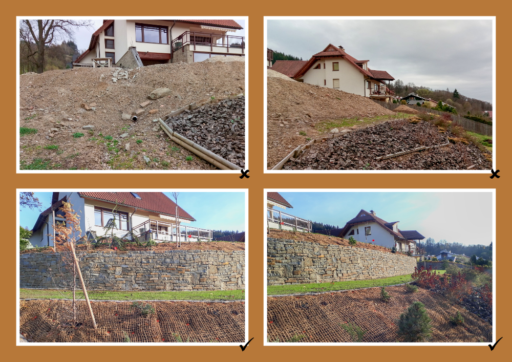 stabilizace svahu, opěrné zdivo - integrovaný krb
