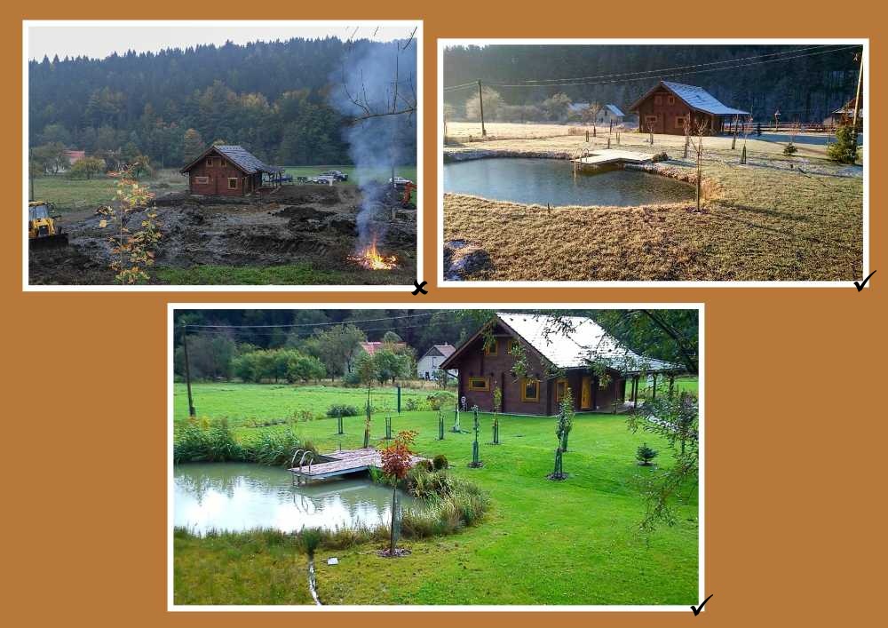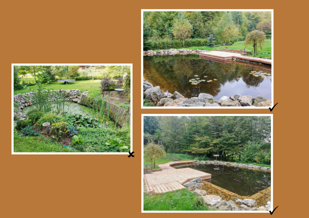 přeměna zahradního jezírka ve velké přírodní koupací jezírko s molem