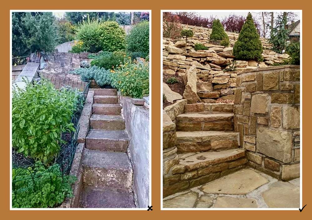 rekonstrukce schodiště a opěrného zdiva - původní materiál